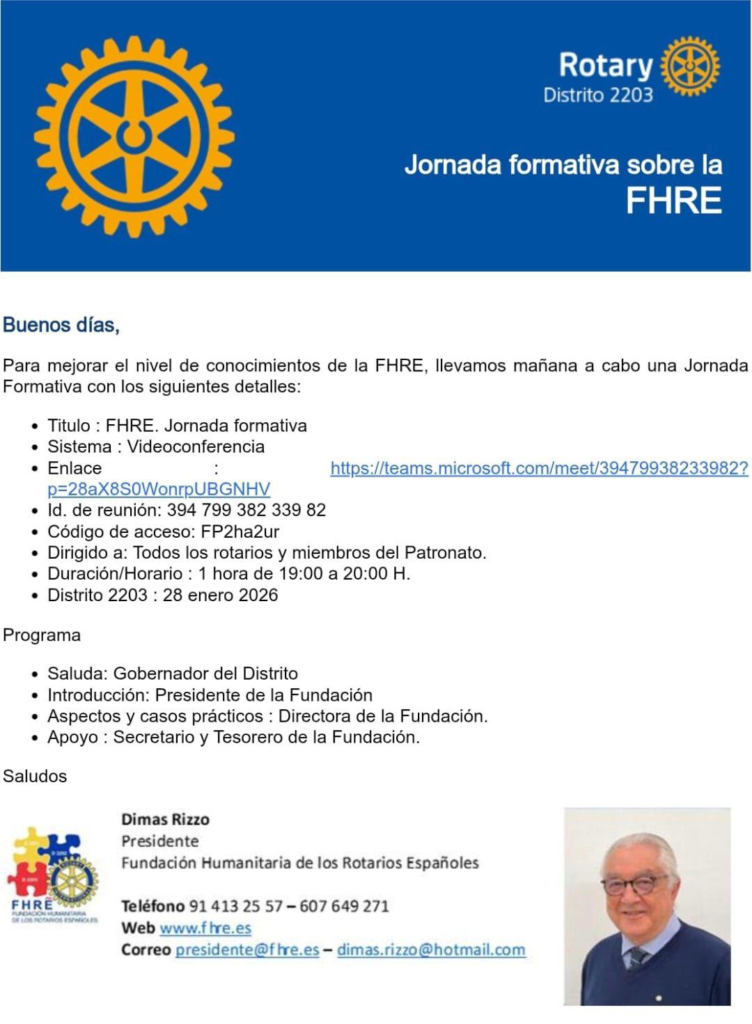 Para mejorar el nivel de conocimientos de la FHRE, llevamos mañana a cabo una Jornada Formativa con los siguientes detalles: